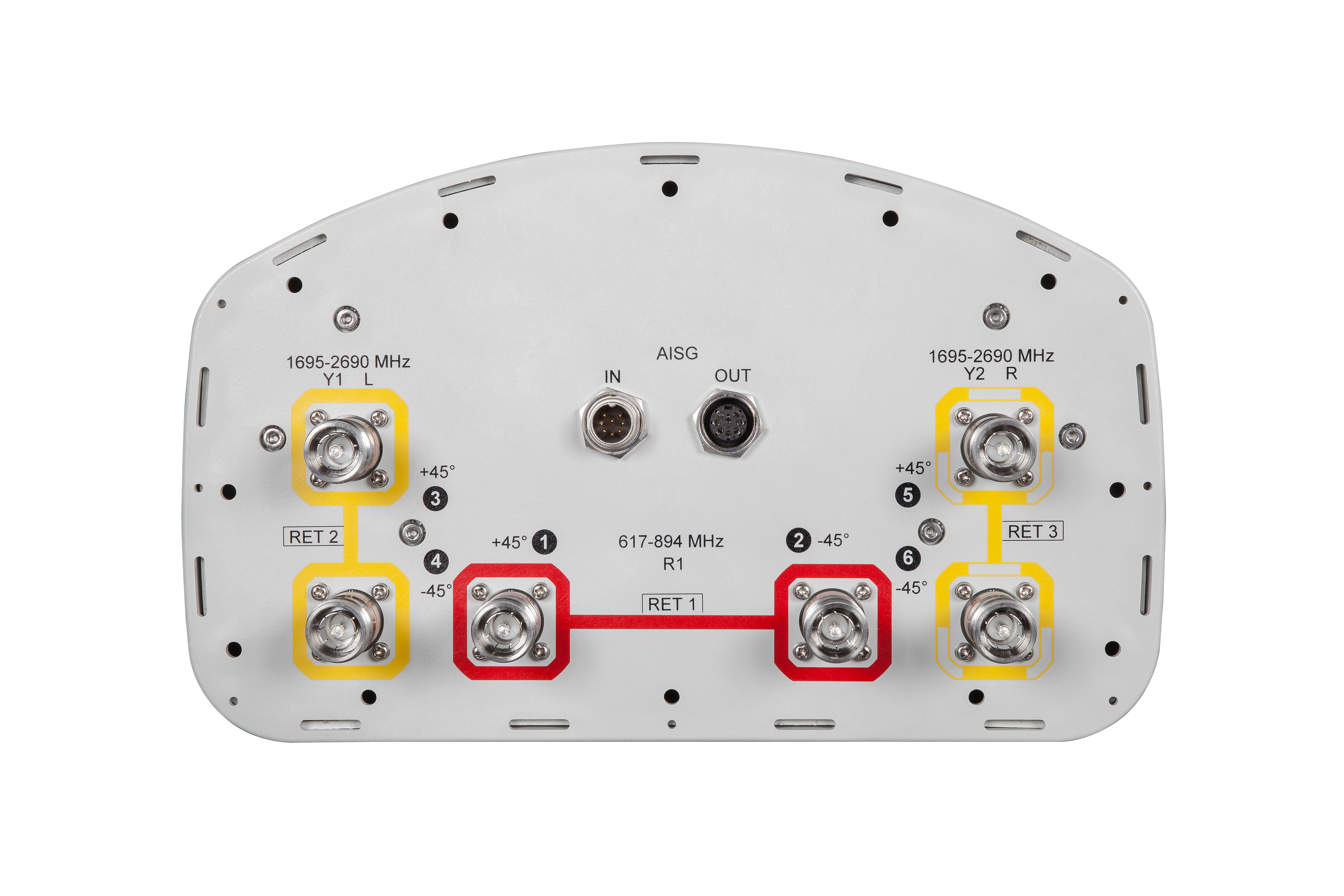 6-port sector antenna, 2x 617-894 and 4x 16952690 MHz, 65° HPBW, 3x RET, 600 MHz-Ready Antenna Technology