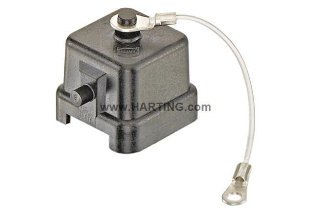 for bulkhead mounted housings, for surface mounted housings, Thermoplastic, With fixing cord,Size: 3 A,Single locking lever,Material (hood/housing): Polycarbonate (PC),RAL 9005 (jet black),Degree of protection: IP44, IP65 / IP67 with seal screw 09 20 000 9918