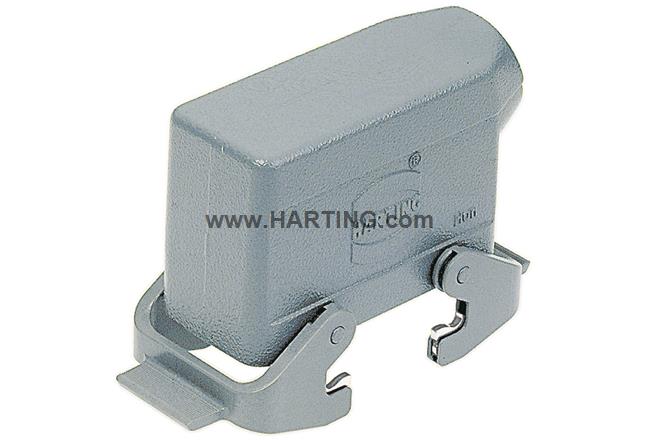 Size: 24 B,Low construction,Double locking lever (on the hood),Polycarbonate (PC), Stainless steel,Side entry,1x Pg 21,Material (hood/housing): Aluminium die-cast
